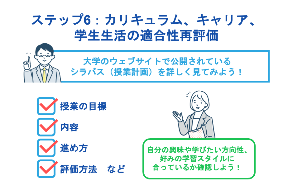 ステップ6:カリキュラム、キャリア、学生生活の適合性再評価