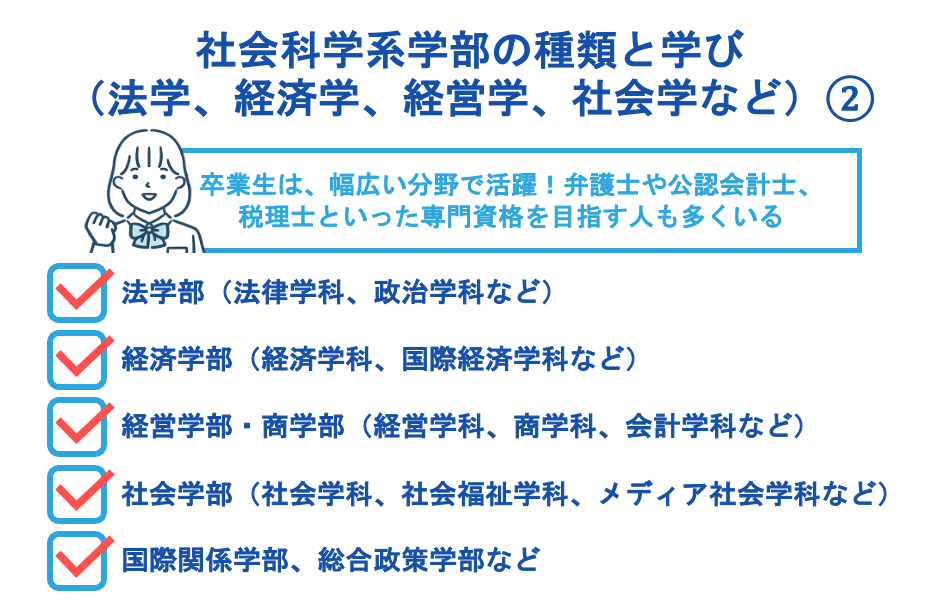 幅広い知識と実践力が身につく社会科学系や理工系は、比較的安定した就職先が多い傾向です。特に経済、工学、情報系などは企業のニーズが高く、進路の選択肢も多彩。一方で、最終的には自分の得意分野と興味を活かせる学部を選ぶのが成功への近道です。詳しくは「社会科学系学部の種類と学び」をご覧ください。
